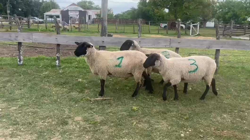 MUY LINDO LOTE DE BORREGAS Y UNA CORDERA RAZA SUFFOLK DE CABAÑA ÑUPORA, CON MUY BUEN DESARROLLO TAMAÑO. ESTAN PARA ENTRAR AL SERVICIO. RP: 150 4 DIENTES (N°1), RP: 187 2 DIENTES (N°2), RP: 211 DIENTE DE LECHE (N°4), SIN RP: 2 DIENTES (N°3)